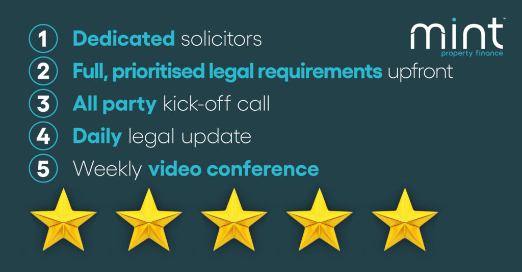 Mint Property Finance works with a select panel on expert solicitors specialising in property law. As such, we are in a position to ensure that every Borrower’s case has a designated solicitor who is familiar with all the particulars of the deal.