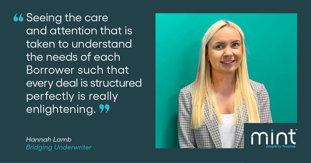 Despite the fact I’m a Bridging Underwriter, I’ve been able to increase my knowledge of how the underwriting process adapts for Development loans. Whether this is something I choose to learn even more about in the future I’m unsure right now, but I know Mint will support me in this if it’s something I want to do.